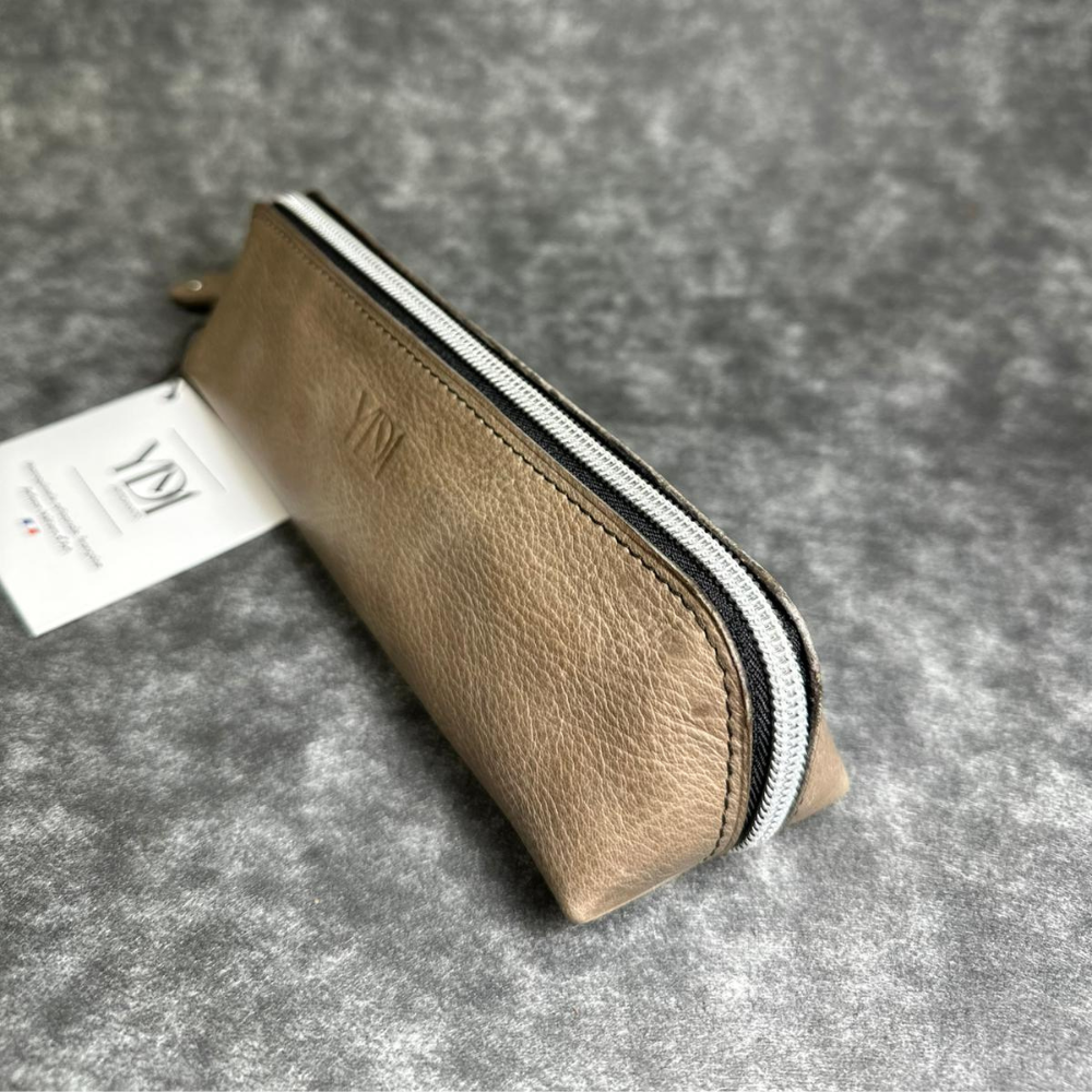 Trousse en cuir de vachette, beige au design intemporel, conçue pour un usage quotidien. Robuste et agréable au toucher,